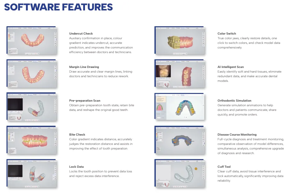 Panda Smart este un scanner intraoral de ultimă generație, cu o greutate redusă, proiectat pentru a combina precizia, viteza și simplitatea în amprentarea digitală. Are funcție giroscop, prin care se poate urmări scanarea. Arcada poate fi scanată foarte rapid, in 30 și 60 secunde.